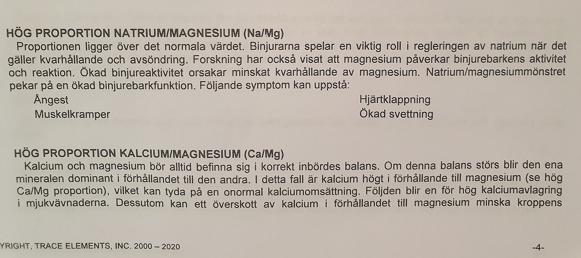 Några veckor innan så hade jag skickat in en hårmineralanalys och när jag fick svaret på den så kunde jag andas ut, där stod alla mina symptom uppräknade! I min mineralprofil så har jag just nu högt kalcium, högt natrium och lågt magnesium. Förhållandet mellan natrium och magnesium är högt där symptomen är just ångest, muskelkramper, hjärtklappning och ökad svettning. Ett högt kalcium ger symptom med ledstelhet och där hela kroppen blir spänd även dina blodådror (högt blodtryck). Högt natrium är till följd av emotionell stress eller en varningsreaktion till följd av biologisk stress som till exempel en inflammation. Nu vet jag ju vad jag ska göra för att få tillbaka min mineralbalans och bli frisk igen. Vad hände med tanden som skapade allt detta? Jo den är också borta.