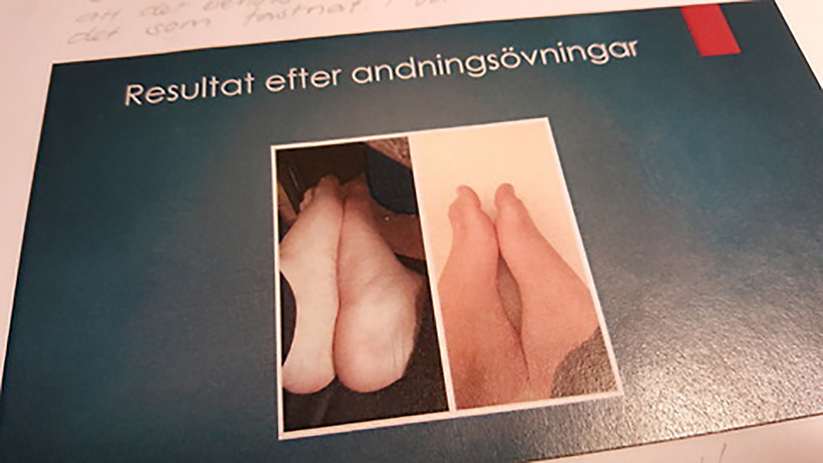 Om du tittar på bilden här ovanför på fötterna så ser du resultatet av andningsövningarna. Du kan i praktiken andas dig smal och få bort svullnader genom att andas rätt! Andning och lymfmassage gör ett bra jobb tillsammans. Till en början är de vanligt att du samlar på dig mer vätska när du gör andningsövningar av den anledningen att det behövs mer vätska för att få ut det som sitter fast i vävnaden.